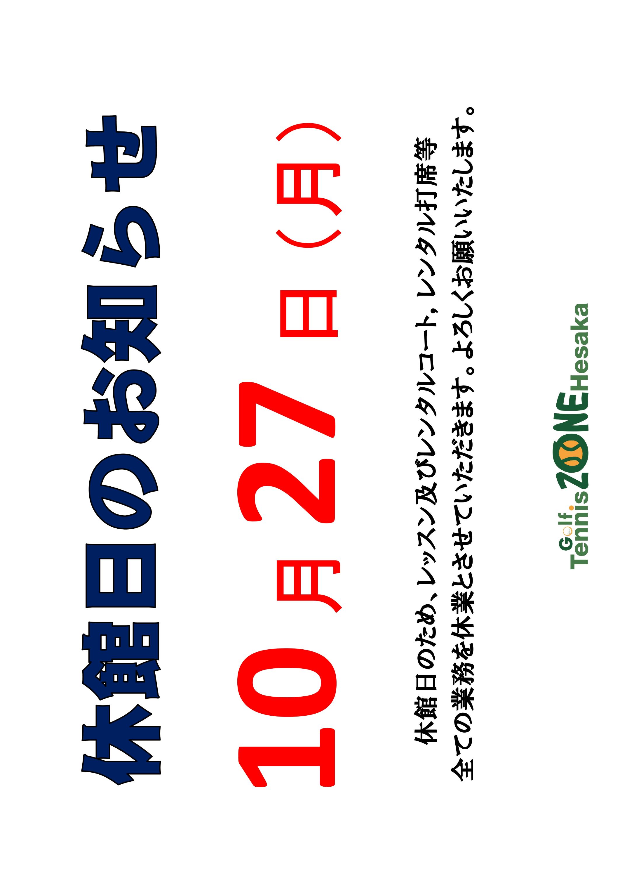 休館日のお知らせ | 新着情報 | Golf Tennis ZONE Hesaka
