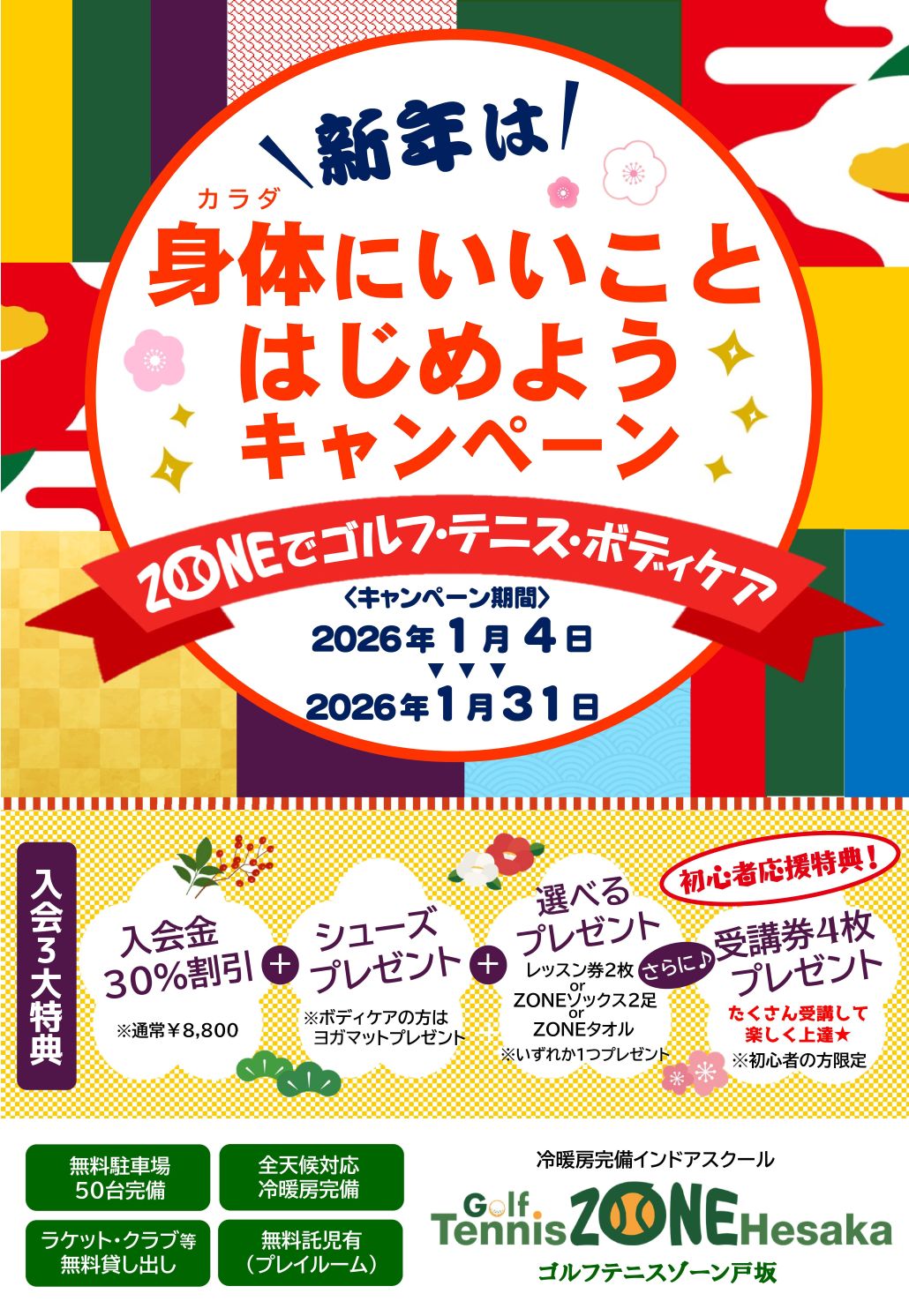 【1月入会キャンペーンのご案内】 | 新着情報 | Golf Tennis ZONE Hesaka