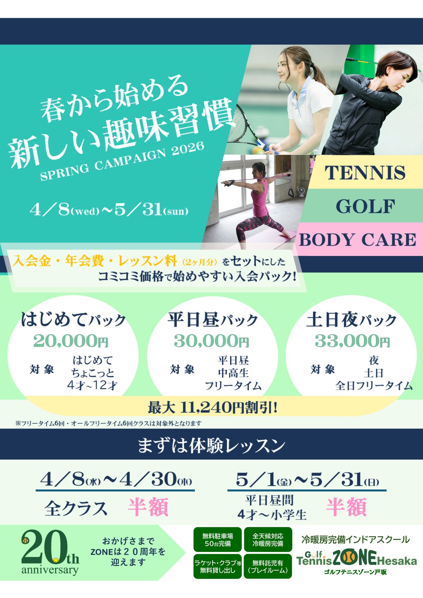 【4月期入会キャンペーンのご案内】 | 新着情報 | Golf Tennis ZONE Hesaka